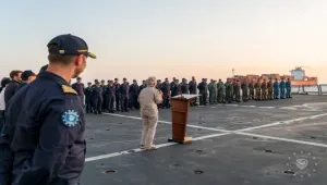 وأوضحت أن عملية الصعود انطلقت على متن مروحية ITS MARCEGLIA من القاعدة الجوية الفرنسية في جيبوتي، حيث أتيحت للوفد خلال إقامتهم على متن السفينة، فرصة مشاهدة تنفيذ مهمة عملية ASPIDES، المتمثلة بالحماية اللصيقة لثلاث سفن تجارية، نظمتها سفينة ITS MARCEGLIA ضمن قافلة.