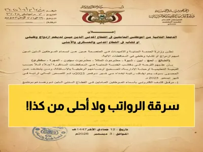 في تطور صادم يعيد تشكيل خريطة الوظيفة العامة في اليمن، كشفت وزارة الخدمة المدنية عن فضيحة مدوية تضم 4,600 موظف يتقاضون رواتب دون استحقاق حقيقي - رقم يعادل تعداد مدينة صغيرة بأكملها. الحقيقة المذهلة: موظف واحد يحصل على ثلاثة رواتب من جهات مختلفة بينما مواطن آخر لا يجد قوت يومه. الساعة تدق بقوة: 30 يوماً فقط تفصل آلاف الأسر عن شبح انقطاع الراتب الوحيد في ظل أزمة اقتصادية خانقة تعصف باليمن.