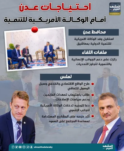 وضع محافظ العاصمة عدن أحمد حامد لملس، خلال استقباله وفد رفيع من الوكالة الأمريكية للتنمية، في معاشيق أبرز الاحتياجات التنموية للمدينة لتحسين الخدمات والواقع المعيشي.