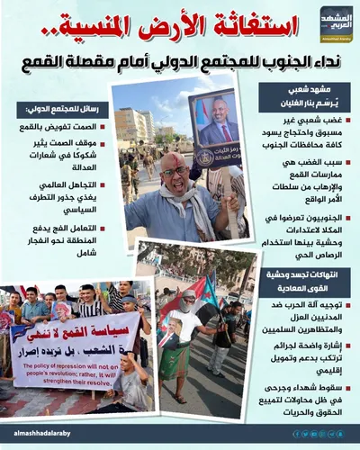 استغاثة الأرض المنسية نداء الجنوب للمجتمع الدولي أمام مقصلة القمع إنفوجراف