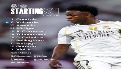ريال مدريد: كورتوا - كاريراس - روديجر - أسينسيو - فالفيردي - تشواميني - بيلنيجهام - سيبايوس - رودريجو - فينيسيوس – جارسيا.