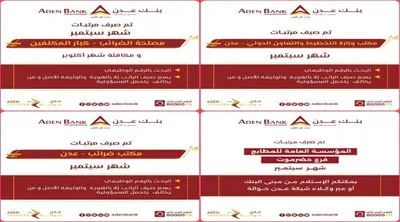 الإعلان عن صرف مرتبات مرافق حكومية جديدة عبر بنك عدن أسماء
