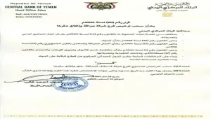 وتضمن القرار الأول، سحب الترخيص الممنوح لفرع شركة الاحقاف للصرافة – عتق وإغلاق مقرها، والمثبتة بتقرير النزول الميداني المرفوع من قطاع الرقابة على البنوك.