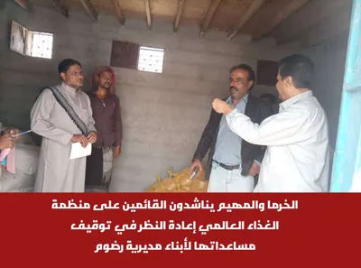 الخرماء والمهيم يناشدون القائمين على منظمة الغذاء العالمي إعادة النظر في توقيف مساعداتها لأبناء مديرية رضوم