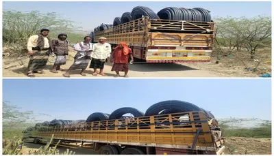 وصلت إلى مديرية طور الباحة، من/ لحج، اليوم الثلاثاء، دفعة من شبكات الإمدادات للمياه المقدمة من اللجنة الدولية للصليب الأحمر.