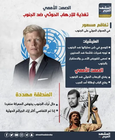 الصمت الأممي تغذية للإرهاب الحوثي ضد الجنوب إنفوجراف