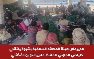 مدير عام هيئة المصائد السمكية بشبوة يلتقي صيادي الحاوي للحفاظ على التوازن الغذائي