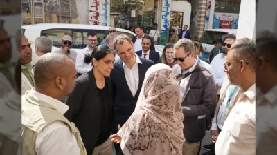 وتضمن جدول الزيارة الاطلاع على المشاريع الممولة بريطانياً، حيث تفقد الوزير البريطاني مخيمات النازحين في منطقة الشعب، ومركز دار سعد الصحي الذي يقدم خدمات التغذية والتطعيم.