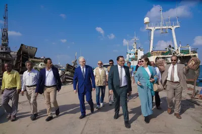 وجرى خلال الزيارة الاطلاع على مستوى التقدم في أعمال إعادة التأهيل التي ينفذها البرنامج الإنمائي للأمم المتحدة (UNDP) بتمويل من البنك الألماني للتنمية (KfW)، وبتكلفة إجمالية تبلغ 35 مليون دولار. ويشمل المشروع تأهيل الرصيف البحري للميناء والمنشآت التشغيلية والمرافق الخدمية، وفي مقدمتها الثلاجة المركزية بسعة 2000 طن، وورشة الصيانة المركزية، ومعمل إنتاج الفيبرجلاس، إضافة إلى تطوير خدمات النقل والتفريغ وتحسين العمليات التشغيلية داخل الميناء.