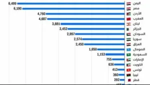 وجاءت اليمن في الصدارة بنحو 6.4 آلاف تأشيرة، تلتها مصر بنحو 6.1 آلاف تأشيرة، فيما حلت الأردن ثالثة بقرابة 4.7 آلاف تأشيرة.
