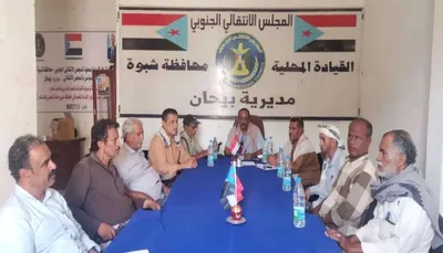 عقدت الهيئة التنفيذية للقيادة المحلية للمجلس الانتقالي الجنوبي في مديرية بيحان بمحافظة شبوة، اليوم الاثنين، اجتماعها الدوري لشهر يوليو، برئاسة رئيس الهيئة، أحمد محسن القربعي.