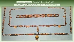 وعرض الباحث في صفحته نماذج لمجموعة من الحلي والمجوهرات من آثار اليمن يزيد طولها عن 35 متراً، فقدت منذ سنوات من متحف عدن: