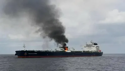 وكانت شركة أمبري البريطانية للأمن البحري قد أفادت في وقت سابق اليوم، أن ناقلة نفط ترفع علم الكاميرون تعرضت لانفجار أثناء إبحارها على بعد 60 ميلاً بحريًا من سواحل أحور، ما أدى إلى إطلاق نداء استغاثة عاجل من طاقم السفينة.
