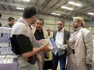 وأضاف أن الكتب المتبقية لطلاب الشهادتين الأساسية والثانوية ستُشحَن من مطابع الكتاب في صنعاء، وستُوزَّع على المديريات حسب خطة مكتب التربية والتعليم ووفقًا لـ حصة كل مديرية.