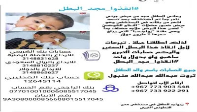 تفاعل شعبي ورسمي مع الحالة المرضية للطفل امجد عنبول
