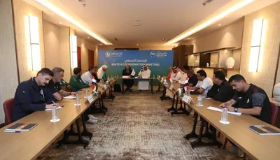 وفي الاجتماع الذي يسبق مباراتا نصف النهائي للبطولة التي تستضيفها أبها السعودية، تم مناقشة بعض الأمور الإدارية والتنظيمية والإعلامية بحضور مدير منتخبنا الوطني الاستاذ نبيل محمد الجبني، ومسؤول تجهيزات المنتخب الكابتن عمر باصهيب.