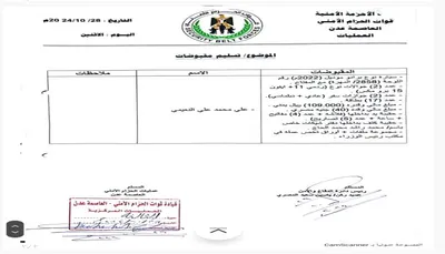 وهذه وثيقة تسليم واستلام بين الحزام الأمني ومسؤل الدفاع والأمن في رئاسة الوزراء الدكتور ياسين المصري ..