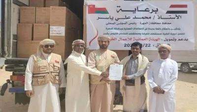 دشن وكيل محافظة المهرة لشؤون الشباب الاستاذ بدر سالم كلشات، في مبنى مكتب وزارة الصحة، وتحت رعاية المحافظ محمد علي ياسر محافظ محافظة المهرة، استلام دفعة جديدة من المساعدات الطبية التي تقدمها الجارة الشقيقة سلطنة عمان، بدعم وتمويل الهيئة العمانية للأعمال الخيرية.