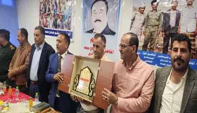 حفل التكريم الذي بدأ بآي من الذكر الحكيم ثم كلمة العميد طيار عبدالفتاح الصلاحي مدير عام لبعوس يافع كما ألقى الإخوة الاستاذ عمار الحمدني مدير عام المفلحي والاستاذ عثمان علوي مدير عام يهر والاستاذ عارف صالح زين مير عام الحد والاستاذ محمد حسين سعيد نائب رئيس القيادة المحلية للمجلس الانتقالي بلبعوس كلمات معبرة بهذه المناسبة اوضحو فيها مناقب الاستاذ سالم صالح محمد كما ألقى الشاعر حسين حسن الشعبي قصيدة شعرية بهذه المناسبة نالت استحسان الحضور.