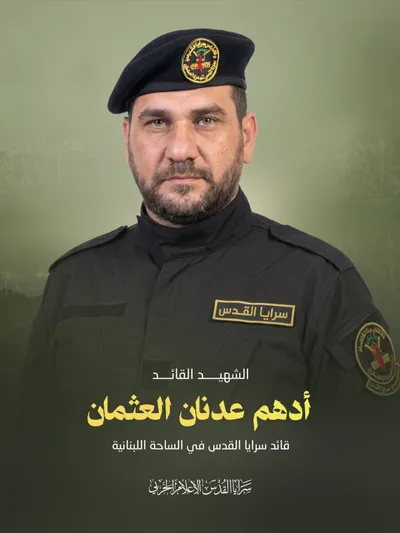 أعلنت سرايا القدس، الجناح العسكري لحركة الجهاد الإسلامي في فلسطين، اليوم الاثنين، استشهاد قائدها في لبنان، أدهم عدنان العثمان (أبوحمزة)، بغارة للعدو الاسرائيلي على ضاحية بيروت.