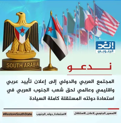 أطلق سياسيون ونشطاء عصر اليوم 19 ديسمبر/ كانون الأول 2025م، هاشتاجات #استعاده_دوله_الجنوب #RestoreSouthState #المسير_الجنوبي_لاعلان_الاستقلال وذلك على منصات التواصل الاجتماعي. ودعوا المجتمع العربي والدولي إلى إعلان تأييده لحق شعب الجنوب العربي في استعادة دولته المستقلة كاملة السيادة. واكدوا أحقية شعب الجنوب العربي في استعادة دولة الجنوب العربي، وذلك استنادًا لإرادة شعبه، وقضيته العدالة، وكمسار أمن للاستقرار. كما تزامنا الهاشتاجات مع خروج أبناء شعب الجنوب العربي في الخارج (نيويورك، وأمستردام، ولندن، وبرلين)، وفي الداخل في محافظة المهرة، والعاصمة الجنوبية عدن. وإبرزوا حشود أبناء شعب الجنوب العربي أمام مقر الأمم المتحدة، في مدينة نيويورك الأمريكية، وفي عواصهم أوروبية عديدة منها العاصمة الهولندية أمستردام، والعاصمة البريطانية لندن، والعاصمة الألمانية برلين، غدًا السبت. كما ابرزوا حشود محافظة المهرة، التي اعلنت كلمتها الفصل، وأكدت بأن كافة أبناء المهرة يقفون مع القوات المسلحة الجنوبية، مطالبين الرئيس القائد عيدروس بن قاسم الزُبيدي، بإعلان دولة الجنوب العربي كاملة السيادة. كما ابرزوا حشود العاصمة الجنوبية عدن، وباقي محافظات الجنوب العربي. وأكدوا على ضرورة دعم حق تقرير المصير لشعب الجنوب العربي، منوهين بأن استعادة دولة الجنوب العربي شرط للاستقرار الإقليمي لا تهديد له، فإرادة شعب الجنوب العربي حقيقة لا يمكن تجاوزها، وهي قضية حق لا أزمة سلطة. وربطوا دعم الجنوب العربي بمصالح المجتمع الدولي على المستوى الأمن، والملاحة، ومكافحة الإرهاب، والاستقرار. واوضحوا بأن الجنوب ليس حركة سياسية طارئة، بل شعب حُرم من دولته. وحذروا من أن تجاهل إرادة شعب الجنوب العربي يعيد تدوير الصراع ويقوّض أي تسوية. واشاروا إلى أن تقرير المصير لشعب الجنوب العربي مبدأ دولي لحماية الشعوب المُضطهدة. وحذروا من أن أي مسار سياسي يتجاوز قضية شعب الجنوب العربي محكوم بالفشل. وبينوا تفويض نقابات المجتمع المدني، والقطاع الخاص والعام والقبائل للمجلس الانتقالي الجنوبي، كإجماع مجتمعي عابر للمناطق. واكدوا على أن الجنوب العربي عامل استقرار في البحر الأحمر وخليج عدن، وشريك فعّال في مكافحة الإرهاب. وتساؤلوا عن لماذا فشلت كل التسويات التي تجاهلت قضية شعب الجنوب