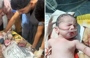 وقال مدير مجمع الشفاء بغزة محمد ابو سلمية في منشور علي صفحته بمنصة “فيسبوك” إن طفلا اخرج على عجل بعملية قيصرية طارئة في قسم الطوارئ من قبل اطباء القسم بعد ان قصف الكيان الصهيوني خميتهم واستشهدت الام مباشرة وايضا استشهد الاب .