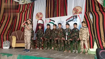 أقيمت بمديرية دمت في محافظة الضالع فعالية خطابية بمناسبة عيد جمعة رجب نظمتها مدارس المناهل.
