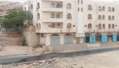 تسرب لمجاري الصرف الصحي في مبنى مصلحة الضرائب بالمكلا