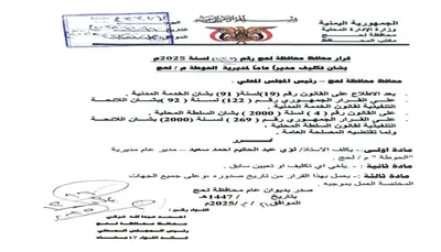 وجاء القرار إلغاء لأي تعيين او تكليف سابق، ويعمل بالقرار الجديد من تاريخ صدور وإبلاغ جميع الجهات المختصة العمل بموجبه.