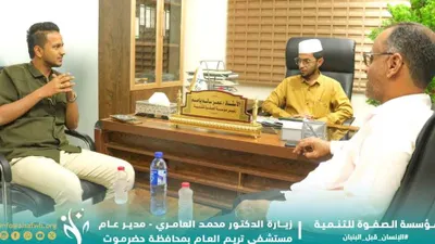 مدير مستشفى تريم العام يزور مؤسسة الصفوة للتنمية بالعاصمة عدن