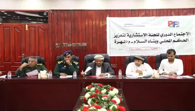 ترأس الأمين العام للمجلس المحلي بمحافظة المهرة الأستاذ سالم عبدالله نيمر رئيس اللجنة الاستشارية لتعزيز الحكم المحلي وبناء السلام اجتماعا موسعاً ضم أعضاء اللجنة الاستشارية وممثلي الأجهزة الأمنية وادارة شؤون النازحين ورؤساء الجاليات الأفريقية والاثيوبية لمناقشة أوضاع النازحين والوافدين الأفارقة غير الشرعيين ضمن خطة اللجنة الاستشارية للجلوس مع المكاتب الحكومية والخدمية ومنظمات المجتمع المدني.