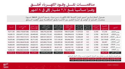 حققت مناقصات نقل وقود الكهرباء وفراً مالياً بلغ 2.7 مليار ريال في تكاليف نقل وقود الكهرباء خلال الفترة من يونيو 2024 حتى يناير 2025، وفقاً لبيانات صادرة عن البنك المركزي اليمني.