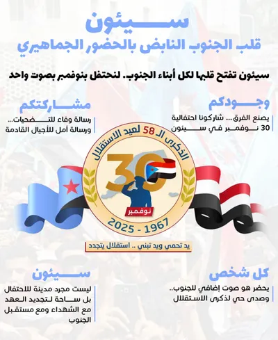 غير أن التحضير لفعالية 30 نوفمبر في سيئون جاء ليكشف عن تحول كبير يتجاوز الطابع الاحتفالي، فالاستعدادات المتسارعة والمشاركة المتوقعة تعكس رغبة جنوبية عامة في إعادة الاعتبار لحضرموت وإثبات أنها ليست ساحة يمكن العبث بها أو سلخها عن محيطها. ويتعامل أبناء الجنوب العربي مع هذا الحدث بوصفه لحظة تتجاوز الرمزية التاريخية لذكرى الاستقلال، لتصبح مناسبة لإعلان موقف سياسي واضح يعيد رسم حدود المشهد داخل المحافظة ويضع حدًا لحالة الاستفراد التي مارستها قوى النفوذ الإخوانية طوال السنوات الماضية.