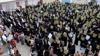 نظمت الهيئة النسائية بمحافظة حجة اليوم، وقفات حاشدة تحت شعار “نفير واستنفار .. نصرة للقرآن وفلسطين”.