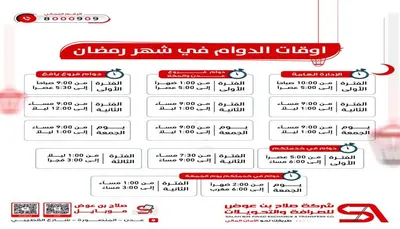 رمضان يجمعنا شركة صلاح بن عوض للصرافة والتحويلات تهنئكم وتبشركم بمواعيد الدوام في رمضان